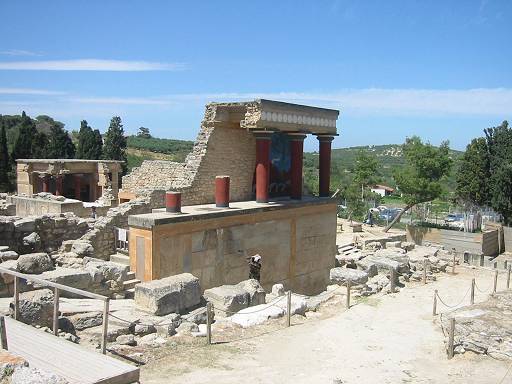 Palast von Knossos: Restaurierte Säulengruppe.