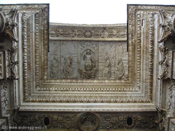 Ansicht auf das Gebälk von unten.