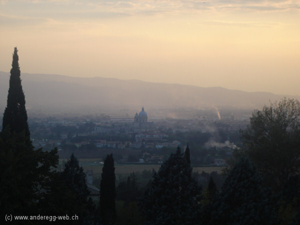 Ausblick von Assisi her auf die Landschaft in der Toskana.